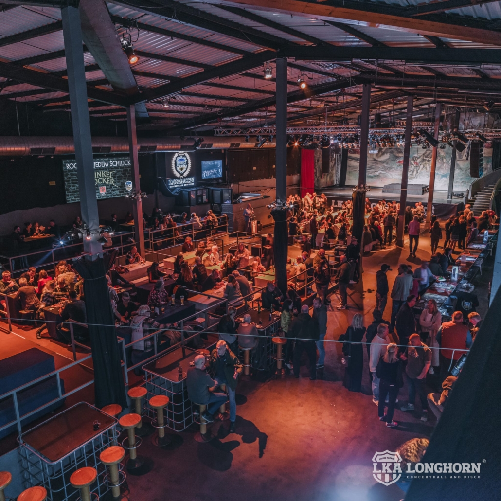 Das gesamte LKA Longhorn vermieten wir gerne auch außerhalb von bereits bestehenden Konzert- und Discoterminen, an Großveranstaltungen sowie Hochzeiten, Abibälle, Abipartys oder Jubilarfeiern. Die Halle im Erdgeschoss bietet die Möglichkeit für eine große Feier oder Veranstaltung mit bis zu 1.500 Personen. Die Halle beinhaltet eine Bühne, eine lange Bar, eine DJ-Kanzel, sowie Sitzgelegenheiten, welche sich an der Seite befinden.